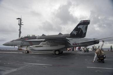 | Keywords: Valiant Shield 140915-N-EH855-061.jpg en Aviation Ordnanceman 2nd Class Chad Lester bottom-right gives the signal to launch an EA-18G Growler from the Shadowhawks of Electronic Attack Squadron 141 from the flight deck of the forward-deployed aircraft carrier USS George Washington during Valiant Shield 2014 Air and sea units from the U S Navy Marine Corps and Air Force participated in the sinking exercise of the former USS Fresno Valiant Shield is a U S -only exercise integrating U S Navy Air Force Army and Marine Corps assets offering real-world joint operational experience to develop capabilities that provide a full range of options to defend U S interests and those of its allies and partners 2014-09-15 VAQ https //www dvidshub net/image/1551358 140915-N-EH855-061 2014-09-16 02 31 PACIFIC OCEAN AT SEA PD-USGov-Military-Navy USS George Washington CVN-73 Images from DoD uploaded by Fæ |