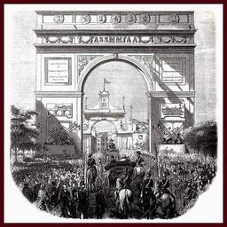 | Keywords: Valladolid-Arco de Santiago.jpg During festivities organized to welcome Queen Elizabeth II in 1858 with the inauguration of railway works in Valladolid it rose a big Ephemeral architecture's triumphal arch on land occupied currently by Plaza de Zorrilla Back it can see Puerta del Campo 1858 http //ancienhistories blogspot com/2014_06_01_archive html other versions PD-old-100 Puerta del Campo Historical images of Valladolid | ||||