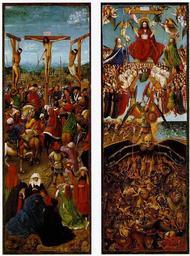 Keywords: Van Eyck Crucifixion Juicio Final.jpg Crucifixión y Juicio final Oleo sobre tabla 2x 56 5x19 7cm http //www desordre net/bloc/oeuvres/van_eyck htm 1426 Jan Van Eyck PD-old-100 100px 100px Diptych - Crucifixion Last Judgment - Metropolitan