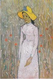 | Keywords: Van Gogh - Junges Mädchen, vor einem Weizenfeld stehend.jpeg Junges Mädchen vor einem Weizenfeld stehend Young girl standing in front of a wheat field oil canvas 66 x 45 cm Washington National Gallery of Art Van Gogh catalogues 788 2055 repro from artbook Auvers June 1890 Creator Vincent van Gogh PD-old-100 Other versions Girl in White by Vincent van Gogh | ||||