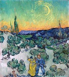 | Keywords: Van Gogh - Passeio ao Crepúsculo.jpg Artwork Creator Vincent van Gogh Landscape with Couple Walking and Crescent Moon / Couple Walking among Olive Trees in a Mountainous Landscape with Crescent Moon Passeio ao Crepúsculo Paysage avec un couple de marche et croissant de lune Saint-Rémy 1890 05 Oil on canvas cm 49 5 45 5 Institution Museu de Arte de São Paulo São Paulo Brazil accession number 113 P http //www vangoghgallery com/catalog/Painting/263/Landscape-with-Couple-Walking-and-Crescent-Moon html vangoghgallery com Van Gogh catalogues 704 1981 http //www masp art br/masp2010/acervo_detalheobra php id 280 Museu de Arte de São Paulo Other versions PD-old-100 DEFAULTSORT Van Gogh 1890-05 Saint-Rémy - Landscape with Couple Walking and Crescent Moon F_704 JH_1981 jpg Couple Walking among Olive Trees in a Mountainous Landscape with Crescent Moon |