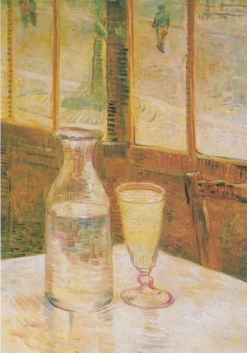 | Keywords: Van Gogh - Stillleben mit Absinth.jpeg Artwork Creator Vincent van Gogh Stillleben mit Absinth Paris Spring 1887 oil canvas 46 5 x 33 cm Institution Van Gogh Museum Amsterdam accession number object history credit line Van Gogh catalogues 339 1238 repro from art book PD-old-100 Café table with absinth by Vincent van Gogh |
