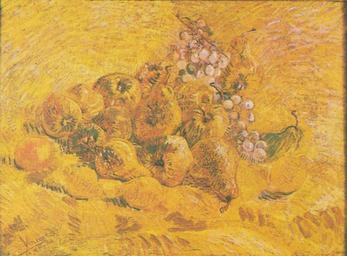 | Keywords: Van Gogh - Stillleben mit Trauben, Birnen und Zitronen.jpg Stillleben mit Trauben Birnen und Zitronen Still Life with Grapes pears and lemons oil canvas 48 5 x 65 cm Amsterdam Institution Van Gogh Museum Van Gogh catalogues 383 1339 repro from art book Paris Autumn 1887 Creator Vincent van Gogh PD-old-100 Other versions Still life paintings of food by Vincent van Gogh Paris 1887 Still life paintings by Vincent van Gogh in the Van Gogh Museum Paintings of lemons Paintings of pears Paintings of grapes |