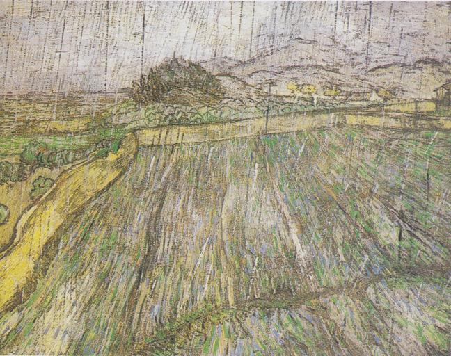 | Keywords: Van Gogh - Weizenfeld im Regen.jpeg Weizenfeld im Regen Wheat field in the rain oil canvas 73 5 x 92 5 cm Philadelphia The Philadelphia Museum of Art Van Gogh catalogues 650 1839 repro from artbook Saint-Rémy November 1889 Creator Vincent van Gogh PD-old-100 Other versions Rain by Vincent van Gogh |