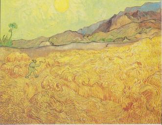 | Keywords: Van Gogh - Weizenfeld mit Schnitter bei aufgehender Sonne.jpeg Weizenfeld mit Schnitter bei aufgehender Sonne Wheatfield with Reaper at sunset oil canvas 73 x 92 cm Amsterdam Van Gogh Museum Van Gogh catalogues 618 1773 repro from artbook Saint-Rémy September 1889 Creator Vincent van Gogh PD-old-100 Other versions Wheat Field with a Reaper F618 | ||||