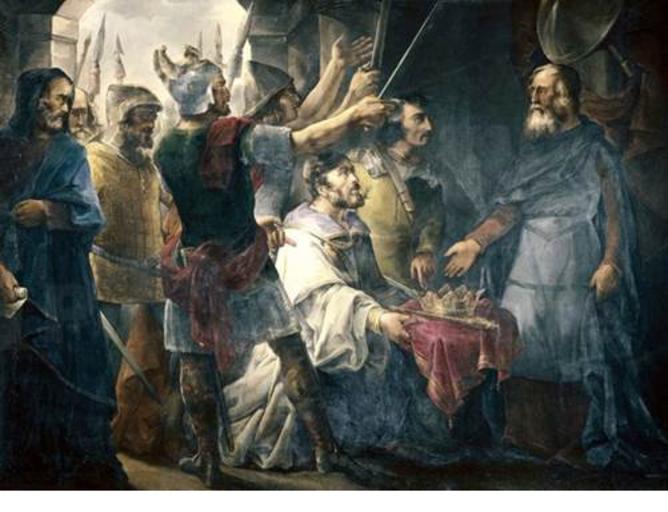 | Keywords: Van Halen-Wamba.jpg Wamba ¿ -688 como rey de los Visigodos Wamba rechazó el nombramiento debido a su avanzada edad pero fue forzado por la nobleza a aceptar el trono el día 1 de septiembre del año 672 en la localidad de Gertici o Gérticos después llamada Wamba en su honor y en la que había fallecido su antecessor el rey Recesvinto Por iniciativa propia a fin de que su elección no fuera considerada una usurpación Wamba exigió ser coronado rey en Toledo donde fue ungido el día 20 de septiembre por el obispo Quirico en la iglesia pretoriense de San Pedro y San Pablo Wamba renunció al trono en el año 680 y falleció en el año 688 y Fue sucedido en el trono por el rey Ervigio Technique oil canvas cm 170 128 Institution Real Academia de Bellas Artes de San Fernando 0403 http //ceres mcu es/pages/Main PosterLounge 1843 PD-old-100 Other versions Wamba Francisco de Paula Van Halen 19th-century paintings in the Royal Academy of Fine Arts of San Fernando 1843 paintings in Spain |