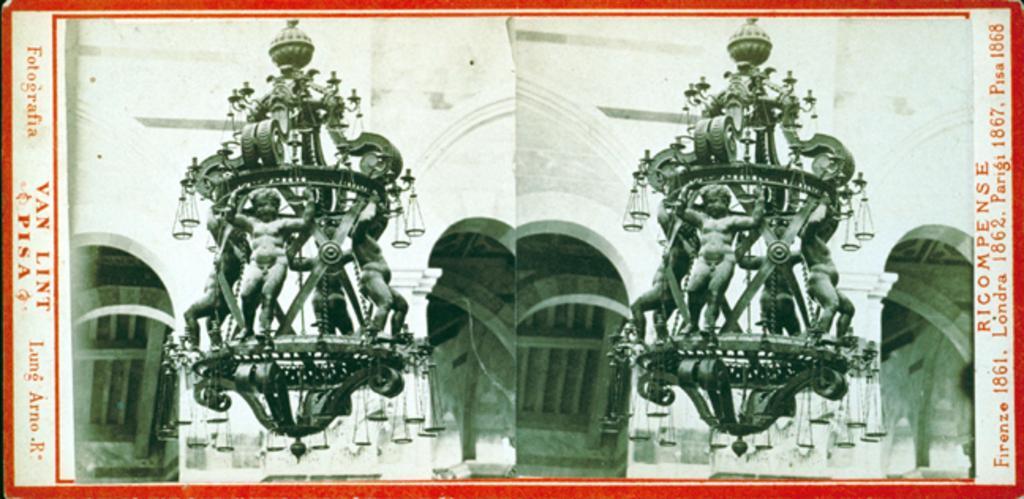 Keywords: Van Lint, Enrico (1829-1882) - Duomo di Pisa - Interno - Lampadario 1.jpg Enrico van Lint 1808-1884 - Il lampadario di Galileo Galilei opera di Vincenzo Possenti 1586 nel Duomo di Pisa Stereofotografia Enrico van Lint 1808-1884 - The lamp of Galileo Galilei leading Galileo to invent the law of the isochrony of the pendulum a work by Vincenzo Possenti 1586 inside the Cathedral in Pisa Italy Stereo card own scan < 1884 Enrico van Lint 1808-1884 PD-old Historical images of Pisa by Enrico van Lint Duomo Historical images of the Cathedral Pisa 1880s Stereo cards of Pisa Duomo Galileo Galilei Interior of the Cathedral Pisa - Nave 1880s Vincenzo Possenti Chandeliers in Pisa Duomo Built in 1586 |