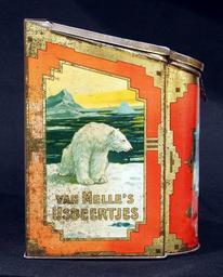 | Keywords: Van Melles IJsbeertjes, oranje blik, foto10.JPG Very old packaging of a Dutch product that is not produced and/or not sold any more Photographed at a collector of Droste memorabilia and old tin cans For more info see http //www tincollectors nl/ tincollectors nl or email info tincollectors nl own 2014-04-11 11 35 36 Alf van Beem CC-Zero Trademarked Sweets tins Van Melle | ||||