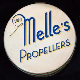 | Keywords: Van Melles Propellers blik, foto 5.JPG Very old packaging of a Dutch product that is not produced and/or not sold any more Photographed at a collector of Droste memorabilia and old tin cans For more info see http //www tincollectors nl/ tincollectors nl or email info tincollectors nl own 2014-04-11 14 04 23 Alf van Beem CC-Zero Trademarked Sweets tins Van Melle PH-IPM aircraft | ||||
