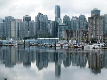Keywords: vancouver city british columbia canada water reflection ocean scenery skyscrapers building architecture skyline city centre pacific shoreline downtown high rise