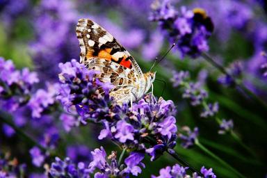 Keywords: vanessa cardui painted lady edelfalter butterfly lavender nectar blossom bloom flower summer insect nature recording nature bloom light purple blue violet flora plant close side eye faithfully deco stalk