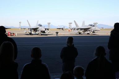 | Keywords: VAQ 137 returns from deployment 151121-N-DC740-050.jpg en 151121-N-DC740-050 OAK HARBOR Wash Nov 21 2015 - Two EA-18G Growlers assigned to Electronic Attack Squadron VAQ 137 complete shutdown procedures after returning to Naval Air Station Whidbey Island from deployment VAQ-137 completed a nine-month deployment aboard the Nimitz-class aircraft carrier USS Theodore Roosevelt CVN 71 U S Navy photo by Mass Communication Specialist 2nd Class John Hetherington <br>Unit Navy Public Affairs Support Element Det Northwest 2015-11-21 Petty Officer 2nd Class John Hetherington https //www dvidshub net/image/2302571/vaq-137-returns-deployment 151121-N-DC740-050 2015-11-23 15 23 OAK HARBOR WA US PD-USGov-Military-Navy Naval Air Station Whidbey Island USS Theodore Roosevelt CVN-71 Images from DoD uploaded by Fæ |