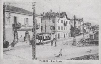 Keywords: Varese, Due Strade.JPG it Varese Due Strade s 1930 Cartolina d'epoca Scaduto other versions Custom license marker 2015 07 26 PD-old Uploaded with UploadWizard Varese tramways