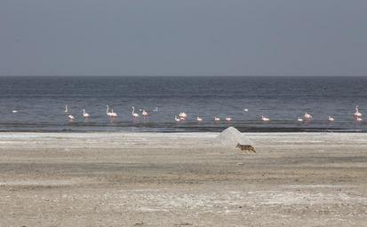 Keywords: Afrikansk guldvarg samt mindre och större flamingor. natur et fåglar djur stränder oromia vargar däggdjur etiopien sjöfåglar hunddjur insjöar flamingor afrikanskaguldvargar platserallmänna