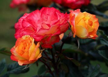 Keywords: varigated roses flowers blossoms yellow orange pink red