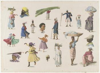 | Keywords: Various Types of Surinamese WDL2897.jpg Artwork ru Бо ет А нольд 1848-1888 fr Borret Arnold 1848-1888 en Borret Arnold 1848-1888 zh 博瑞特 阿诺德 1848-1888 pt Borret Arnold 1848-1888 ar بوريت أرنولد 1848-1888 es Borret Arnold 1848-1888 ru Этническое многооб азие Су инама fr Différents types de Surinamais en Various Types of Surinamese zh 苏里南人的各种类型 pt Vários Tipos de Surinameses ar أنواع مختلفة من السورينامية ru Этот аква ельный исунок А нольда Бо ета 1848-1888 гг состоит из нескольких эскизов изоб ажающих азных членов общества и этнические г уппы составляющие население голландской колонии Су инам в конце 80-х годов XIX века Бо ет был выдающимся художником-любителем а также адвокатом и католическим священником Он изучал п аво в Униве ситете Лейдена а затем с 1878 года занимался адвокатской п актикой до тех по пока не стал чиновником Ве ховного суда в Па ама ибо В 1883 году он п инял священнический сан для того чтобы служить п окаженным в Су инаме Он уме от тифа в 1888 году Бо ет также известен аз аботкой внут еннего уб анства собо а Св Пет а и Павла в Па ама ибо к упнейшего де евянного соо ужения в Ка ибском а хипелаге Этот аква ельный исунок относится к коллекциям KITLV Ко олевского ниде ландского института по изучению Юго-Восточной Азии и Ка ибского а хипелага в Лейдене <br>Одежда и платье; Этнические г уппы; Су инамцы; Аква ельные исунки fr Cette aquarelle d'Arnold Borret 1848-88 se compose de petits croquis des différents membres de la société et de leurs origines ethniques variées au sein de la colonie hollandaise du Suriname à la fin des années 1880 Borret était un artiste amateur accompli et également un avocat et prêtre catholique romain Il étudia le droit à l'Université de Leiden et le pratiqua à Rotterdam avant de devenir greffier en 1878 à la Cour suprême de Paramaribo Il devint prêtre en 1883 dans l'intention de travailler avec les lépreux au Suriname Il mourut du typhus en 1888 Borret est également connu pour son dessin de l'intérieur de la Cathédrale des Saints Pierre et Paul de Paramaribo l'une des plus grandes structures de bois dans les Caraïbes Cette aquarelle provient des collections du KITLV/L'Institut Royal Néerlandais d études de l Asie du Sud-Est et des Caraïbes à Leiden <br>Vêtements et habits; Groupes ethniques; Surinamais; Aquarelle en This watercolor by Arnold Borret 1848-88 consists of small sketches of different members of society and their various ethnic backgrounds in the Dutch colony of Suriname in the late 1880s Borret was an accomplished amateur artist who was also a lawyer and a Roman Catholic priest He studied law at the University of Leiden and practiced in Rotterdam before becoming a clerk in 1878 to the Supreme Court in Paramaribo He became a priest in 1883 with the intention of working with lepers in Suriname He died of typhus in 1888 Borret is also known for his design for the interior of the Saints Peter and Paul Cathedral in Paramaribo one of the largest wooden structures in the Caribbean This watercolor is from the collections of the KITLV/Royal Netherlands Institute of Southeast Asian and Caribbean Studies in Leiden <br>Clothing and dress; Ethnic groups; Surinamese; Watercolor painting zh 这幅 Arnold Borret(1848-88 年)的水彩画对 19 世纪 80 年代 荷兰苏里南殖民 社会中的不同成员进行了描绘,这些社会成员都 不同的种族背景 Borret 是 位多才多艺的业余画家,同时他还是 名律师和罗马天主教神父 他曾 莱顿大学学习法律, 鹿特丹做过律师,然后 1878 年成为帕拉马里博 高法院的 名职员 1883 年他成为 名牧师,目的是与苏里南的麻风病患 起工 1888 年他死于伤寒病 Borret 还因设计了帕拉马里博的 彼得和 罗大教堂的内饰 闻名,该教堂是加勒比海 区 大的 结构建筑之 这幅水彩画出自位于莱顿的 KITLV /荷兰皇家 南亚和加勒比研究 的藏品 <br> 装和 饰; 同种同文化的族群; 苏里南人; 水彩画 pt Esta aquarela de Arnold Borret 1848-88 consiste em pequenos esboços de diferentes membros da sociedade e de suas diversas etnias na colônia holandesa do Suriname no final da década de 1880 Borret era um habilidoso artista amador que também era advogado e padre católico romano Ele estudou direito na Universidade de Leiden e advocou em Rotterdam antes de tornar-se funcionário do Supremo Tribunal em Paramaribo em 1878 Tornou-se sacerdote em 1883 com a intenção de trabalhar com leprosos no Suriname Ele morreu de tifo em 1888 Borret também é conhecido por seu projeto para o interior da Catedral de São Pedro e São Paulo em Paramaribo uma das maiores estruturas de madeira do Caribe Esta aquarela é das coleções do Real Instituto Holandês de Estudos do Caribe e do Sudeste Asiático/KITLV em Leiden <br>Roupas e adornos; Grupos étnicos; Surinamês; Pintura em aquarela ar تتألف هذه اللوحة المائية لأرنولد بوريت 1848-88 من رسوم صغيرة لشتى الأشخاص من المجتمع وخلفياتهم العرقية في مستعمرة سورينام الهولندية في أواخر عقد الثما
