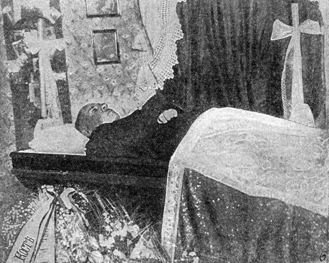 Keywords: Varlamov KA deathbed.jpg ru Константин Александ ович Ва ламов на сме тном од е 1915 Жу нал Огонёк 33 1915 author other versions Custom license marker 2016 01 31 PD-RusEmpire Konstantin Aleksandrovich Varlamov Deathbed portraits
