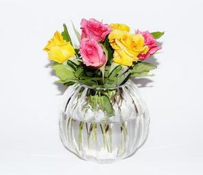 Keywords: vase crystal vase roses yellow pink garden flowers