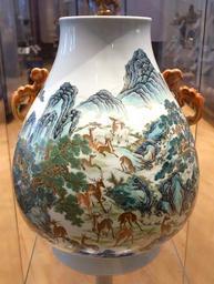 | Keywords: Vase of the Hundred Deer, view 2, China, Qing dynasty, Qianlong period, 1736-1795, porcelain with painted overglaze - Royal Ontario Museum - DSC03999.JPG en Exhibit in the Royal Ontario Museum Toronto Ontario Canada This work is old enough so that it is in the public domain Photography was permitted in the museum without restriction 2013-10-08 14 28 33 own Daderot cc-zero Uploaded with UploadWizard Vase of the Hundred Deer | ||||