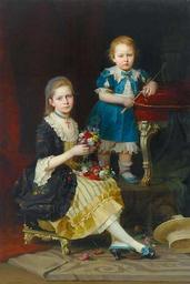 | Keywords: Vastagh Group of Children 1876.jpg Artwork Creator György Vastagh 1876 Oil on canvas Size cm 109 5 161 Private collection object history exhibition history credit line bottom left Vastagh Gy 1876 accession number http //axioart com/ axioart com http //axioart com/index php set_lang en op live_item id 265974 Info http //axioart com/images/live_images/original/1528/55 jpg Pic PD-old-70 Paintings by György Vastagh 1876 1876 oil on canvas paintings in the United States Portrait paintings of children Paintings with signatures 19th-century paintings location missing Looking at viewer Paintings of girls Females with flowers in art Paintings of baskets |