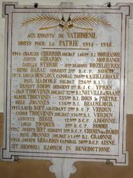 | Keywords: Vathiménil (M-et-M) église, plaque monument aux morts.jpg fr Vathiménil M-et-M église Saint-Jean-Baptiste plaque monument aux morts 2016-07-02 16 27 28 own Havang nl other versions 48 508431 6 62303 heading 138 75 cc-zero L'été des régions Église Saint-Jean-Baptiste de Vathiménil War memorials in Meurthe-et-Moselle Uploaded via Campaign Été des régions 2016 | ||||
