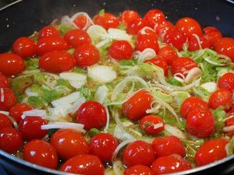 Keywords: vegetable pan tomatoes leek spring onions substantial red delicious sear kitchen cook food cherry tomatoes