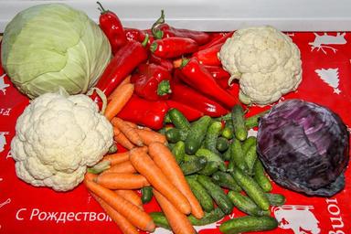 Keywords: vegetables carrots cucumbers cabbage peppers healthy vegetarian raw fresh natural cauliflower vitamins nature agriculture food
