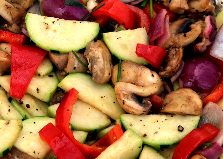 Keywords: vegetables grilled vegetables pan fry colorful onion paprika mushrooms cucumber healthy delicious eat