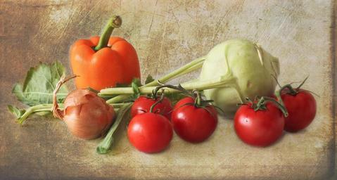 Keywords: vegetables tomatoes food delicious frisch vegan trusses kitchen eat vitamins kohlrabi paprika onion