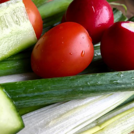 Keywords: vegetables tomatoes red food red-green tomato healthy cucumber onion kitchen crop