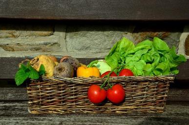 Keywords: vegetables tomatoes salad vegetable basket garden harvest frisch vegetarian eat healthy vitamins raw food food