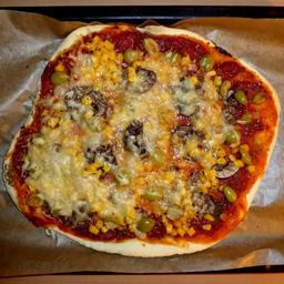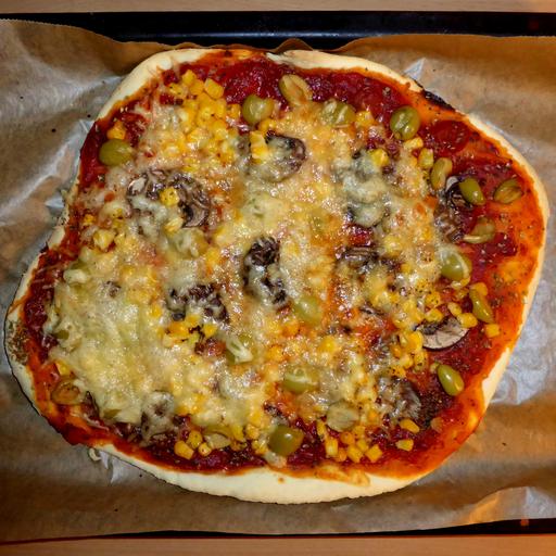 | Keywords: Vegetarian-pizza.jpg en Vegetarian Pizza with corn cheese tomato sauce mushroom green olives and garlic de Vegetarische Pizza mit Mais Käse Tomatensoße Champignons grünen Oliven und Knoblauch own MartinThoma 2016-02-07 Images by Martin Thoma/Food Vegetarian pizzas Taken with Panasonic Lumix DMC-TZ41 Cc-zero |