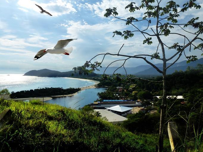 Keywords: vegetation mar seagull sky clouds birds atlantic forest