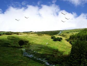 Keywords: vegetation nature field green environment plants trees landscape tropical vegetation clouds sky bird tropical birds