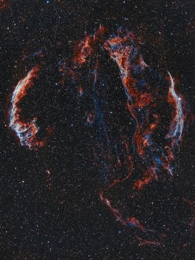 Keywords: Veil Nebula Complex NGC 6960, 6992, 6995, 6974, 6979, IC 1340.jpg en Wide field image of the Veil Nebula Complex Very deep image +55h of exposure time Other designations NGC 6960 6992 6995 6974 6979 IC 1340 Image details Equipment Camera SVXR-18 Telescope FS60 Mount Orion Atlas Guided with Starlight Xpress OAG Guide Camera QHY5L-2 FW Starlight Xpress Filters Astrodon 5nm 36mm Software Capture Main Sequence Generator Mount Control EQMOD Calibrated and Processed Pixinsight Exposure 28 x 1h Ha 27 x 1h OIII 30 x 1m each RGB for stars colors Total Time +55h 2013-10-15 11 10 18 own Jose A Mtanous cc-zero Uploaded with UploadWizard Veil Nebula |