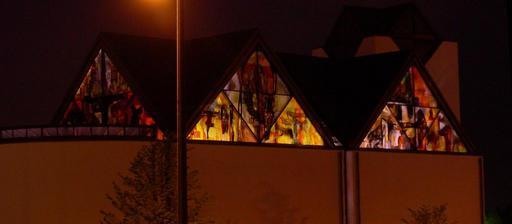 Keywords: Vejleå kirke ishoej denmark exterioer nordside.jpg en Vejleå Kirke Ishøj Denmark northside by night own 2006-05-19 Ib Rasmussen Public domain Vejleå Kirke Church windows in Denmark Colored windows Taken with Nikon Coolpix S4