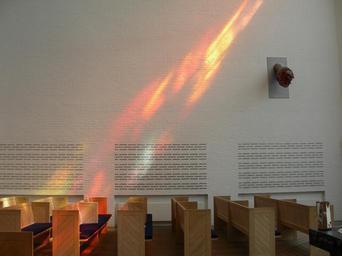 Keywords: Vejleaa kirke ishoej denmark lightpattern.jpg Vejleå Kirke Ishøj Denmark Light pattern from the glass mosaics own 2006-06-11 Ib Rasmussen Public domain Vejleå Kirke