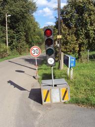 Keywords: VELE semafor.JPG cs Mobilní semafor ve Velenicích při opravách skal u domků je jich ve vsi teď několik own Zákupák 2012-09-30 Traffic signals in the Czech Republic Velenice Česká Lípa District