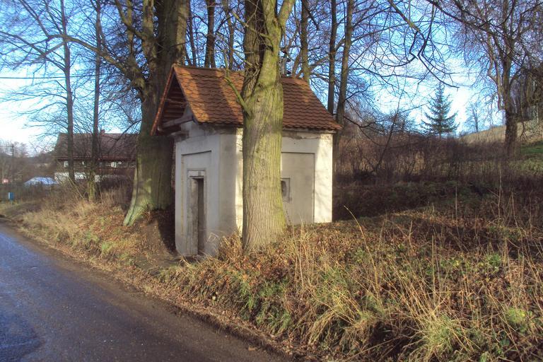 Keywords: Velenice kaple U Huberta 1.JPG cs Kaplička u penzionu Hubert ve Velenicích own Zákupák 2013-12-23 Chapels in Česká Lípa District Velenice Velenice Česká Lípa District