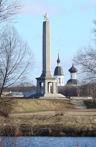 Keywords: Velikit Luki stella1.JPG ru Великие Луки стелла War memorial in the city of Velikiye Luki own ru uzer Анд ей_Лапшин Obelisk of Glory Velikiye Luki Star symbols on top of objects