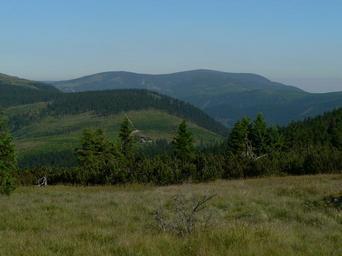 | Keywords: VelkaJezerna.jpg cs Pohled z hlavního hřebene na Velkou Jezernou v pozadí Keprnická hornatina vlevo Vozka vpravo Keprník V sedle před Velkou Jezernou je Františkova myslivna own Martin Vavrik 2010-07-11 Velká Jezerná Keprník Vozka Hrubý Jeseník Františkova myslivna Szczyty Wysokiego Jesionika |