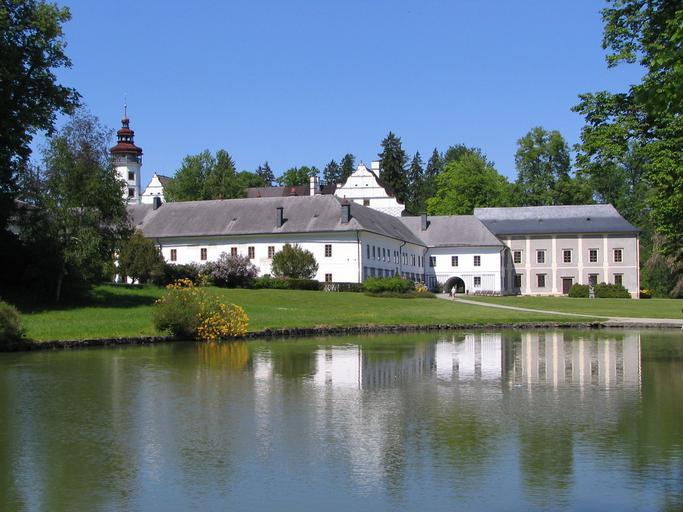 Keywords: Velke Losiny chateau 1.jpg Zámek Velké Losiny “ pohled ze zámeckého parku Velké Losiny chateau “ view from the park Own 2007-05-19 Karel Jára Castle in Velké Losiny Water reflections of structures in the Czech Republic Ponds in Å umperk District Castle garden in Velké Losiny |
