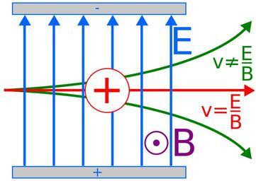| Keywords: Velocity selector.svg en Velocity selector in a mass spectrometer The electric force is equal and opposite to the magnetic force only in the case where <math>v \frac E B </math> Particles moving at all other velocities do not travel along a straight path Own Sjlegg 2009-06-02 Mass spectrometry diagrams |