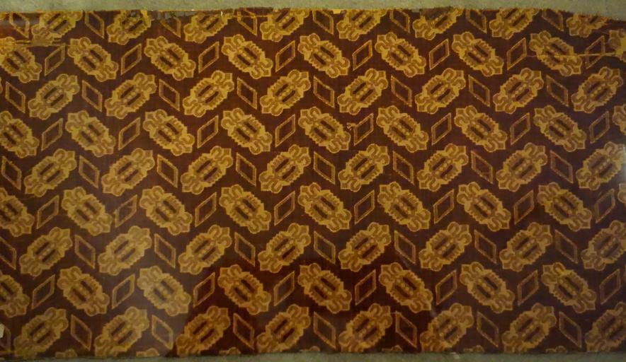 | Keywords: Velvet with barrettes and rhomboids, Italy, Baroque, early 17th century, silk cisele velvet - Royal Ontario Museum - DSC04371.JPG en Exhibit in the Royal Ontario Museum Toronto Ontario Canada This work is old enough so that it is in the public domain Photography was permitted in the museum without restriction 2013-10-08 16 07 56 own Daderot cc-zero Patricia Harris Gallery of Textiles Costume at the Royal Ontario Museum Uploaded with UploadWizard 17th-century textiles | ||||