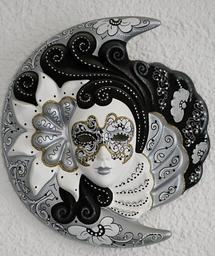 Keywords: venetian mask faces venice italy the mask venezia hand labor color glitter macro artists painting art black symbol face white black and white gypsum decoration wall valuable expensive beautiful moon sun craft