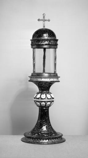 | Keywords: Venetian - Reliquary with Floral Scrolls - Walters 44171 - Profile.jpg The inside of the foot is coated with blue enamel on white and sprinkled with gilt stars It shows a pointed shield or charged with three crescents azure This coat-of-arms may refer to any one of three Venicen families Barberi Barbetta or Barba ca 1500 technique painted enamel gold copper H 14 15/16 x Diam of base 5 5/16 in 38 x 13 49 cm accession number 44 171 24118 Raoul Heilbronner Paris date of acquisition unknown by purchase Henry Walters Baltimore 1911 by purchase Walters Art Museum Henry Walters Acquired by Henry Walters 1911 place of origin Venice Italy Walters Art Museum license Renaissance applied arts in the Walters Art Museum Art of Venice Media contributed by the Walters Art Museum needs category review Painted enamel art in the Walters Art Museum |