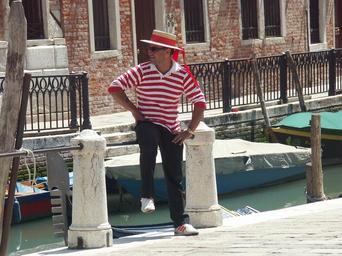 Keywords: Venezia-Gondolier.JPG Gondoliere a Venezia 2005-05-25 own assumed Rado Bahna~commonswiki People of Venice People wearing straw hats Gondoliers
