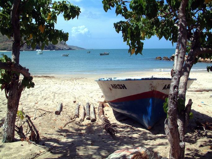 Keywords: venezuela boat sea ocean water sky clouds scenic beach sand trees nature outside boats
