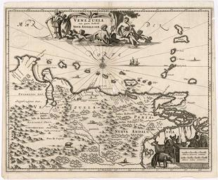 | Keywords: Venezuela with the Southern Part of New Andalusia WDL11337.png Artwork ru Гондиус Ген ик 1597-1651 fr Hondius Hendrik 1597-1651 en Hondius Hendrik 1597-1651 zh 汉德克 洪第乌斯 1597-1651 pt Hondius Hendrik 1597-1651 ar هونديوس هندريك 1597-1651 es Hondius Hendrik 1597-1651 ru Венесуэла с южной частью овой Андалусии fr Le Venezuela et la partie sud de la Nouvelle Andalousie en Venezuela with the Southern Part of New Andalusia zh 委内瑞拉与新安达卢西亚南部 pt Venezuela com a parte sul de Nova Andaluzia ar فنزويلا والجزء الجنوبي من الأندلس الجديدة ru Эта ка та Венесуэлы и части овой Андалусии п овинций Испанской импе ии на те ито ии сов еменной Венесуэлы составленная в XVII веке является копией более анней ка ты опубликованной в Амсте даме Хен иком Хондиусом 1597 1651 гг Хондиус был сыном Йодокуса Хондиуса 1563 1612 гг фламандского ка тог афа и г аве а поселившегося в Амсте даме около 1593 года и основавшего там дело по п оизводству глобусов и пе вых больших ка т ми а В 1604 году Хондиус п иоб ел пластины для атласа ми а е като а и в 1606 году выпустил новое издание его знаменитой аботы После сме ти Хондиуса-ста шего в 1612 году Хен ик со своим б атом Йодокусом п одолжили семейный бизнес Вместе со своим шу ином Иоганном Янссоном Хен ик п одолжал издавать мате иалы кото ые стали известны как атлас е като а-Хондиуса Ка та составлена на латыни а названия мест указаны на испанском языке В п авой части ка ты изоб ажена ека О иноко и ост ов Т инидад а ка туше в нижнем п авом углу азмещаются исунки с изоб ажением п едставителей ко енных на одов и экзотических животных асштаб на ка те указан в двух единицах немецких и ф анцузских милях <br>Испания Колонии fr Cette carte du XVII<sup>e</sup> siècle du Venezuela et d'une partie de la Nouvelle Andalousie provinces de l'Empire espagnol situées dans l'actuel Venezuela est une copie d'une carte antérieure publiée à Amsterdam par Henricus Hondius 1597-1651 Hondius était le fils de Jodocus Hondius 1563-1612 cartographe et graveur flamand qui s'installa à Amsterdam en 1593 environ et créa un commerce produisant des globes et les premières grandes cartes du monde En 1604 Hondius acquit les plaques pour l'atlas mondial de Mercator et en 1606 il publia une nouvelle édition de cet ouvrage célèbre Après la mort de Jodocus Hondius l'Ancien en 1612 Henricus et son frère Jodocus reprirent l'entreprise familiale Avec son beau-frère Johann Jansson Henricus poursuivit la publication de ce qui allait devenir l'atlas de Mercator-Hondius La carte est en latin et les noms de lieux sont indiqués en espagnol Le fleuve Orénoque et l'île de Trinidad figurent sur le côté droit de la carte Le cartouche en bas à droite montre des images de peuples indigènes et d'animaux exotiques Deux échelles sont fournies l'une en miles allemands et l'autre en miles français <br>Espagne--Colonies en This 17th-century map of Venezuela and a part of New Andalusia provinces of the Spanish Empire located in present-day Venezuela is a copy of an earlier map published in Amsterdam by Henricus Hondius 1597 1651 Hondius was the son of Jodocus Hondius 1563 1612 a Flemish cartographer and engraver who settled in Amsterdam in about 1593 and established a business that produced globes and the first large maps of the world In 1604 Hondius acquired the plates for Mercator s world atlas and in 1606 published a new edition of this famous work Following the elder Hondius s death in 1612 Henricus and his brother Jodocus carried on the family business With his brother-in-law Johann Jansson Henricus continued publication of what became known as the Mercator-Hondius atlas The map is in Latin with place-names given in Spanish Shown on the right side of the map are the Orinoco River and the island of Trinidad The cartouche in the lower right features pictures of native peoples and exotic animals Two scales are provided in German and French miles <br>Spain--Colonies zh 这是 张 17 世纪的委内瑞拉与部分新安达卢西亚的 图,它们属于西班牙 国的 份,位于今委内瑞拉境内,这张 图是亨里克斯·洪第乌斯(Henricus Hondius,1597-1651 年) 阿姆斯特丹出版的早 图的 个副 洪第乌斯是约斯·洪第乌斯(Jodocus Hondius,1563-1612 年)之子 约斯是 名佛兰芒制图师与雕刻师,大约 1593 年,他定居阿姆斯特丹,成立了 家公司,公司生产 球仪,并出版了第 幅世界 图 1604 年, 约斯获得了墨卡托的世界 图册的图版,并于 1606 年出版了该著名 品的新版 1612 年 洪第乌斯去世后,亨里克斯 Henricus 和他的兄弟约斯继续经营家族企业 其连襟约翰内斯· 森尼斯(或称 )的帮助下,亨里克斯继续出版了著名的墨卡托-洪第乌斯 图集 该 图为拉丁语, 名为西班牙语 图右边为奥里诺科河和特立尼达岛 右下角的的涡卷装饰包含 原住民和珍禽异兽的动物图片 图提供两个比例尺,分别是德国英里和法国英里 <br>西班牙-殖民 pt Este mapa do século XVII da
