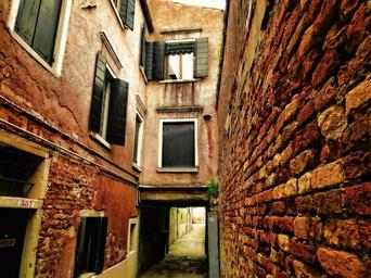 Keywords: venice architecture buildings italy alley lane alleyway city culture historic streets walls old windows brick